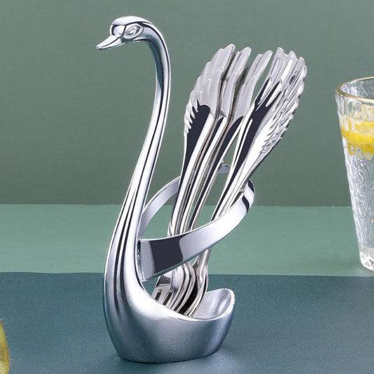 Elegant Swan Stainless Steel Spoon Fork Holder