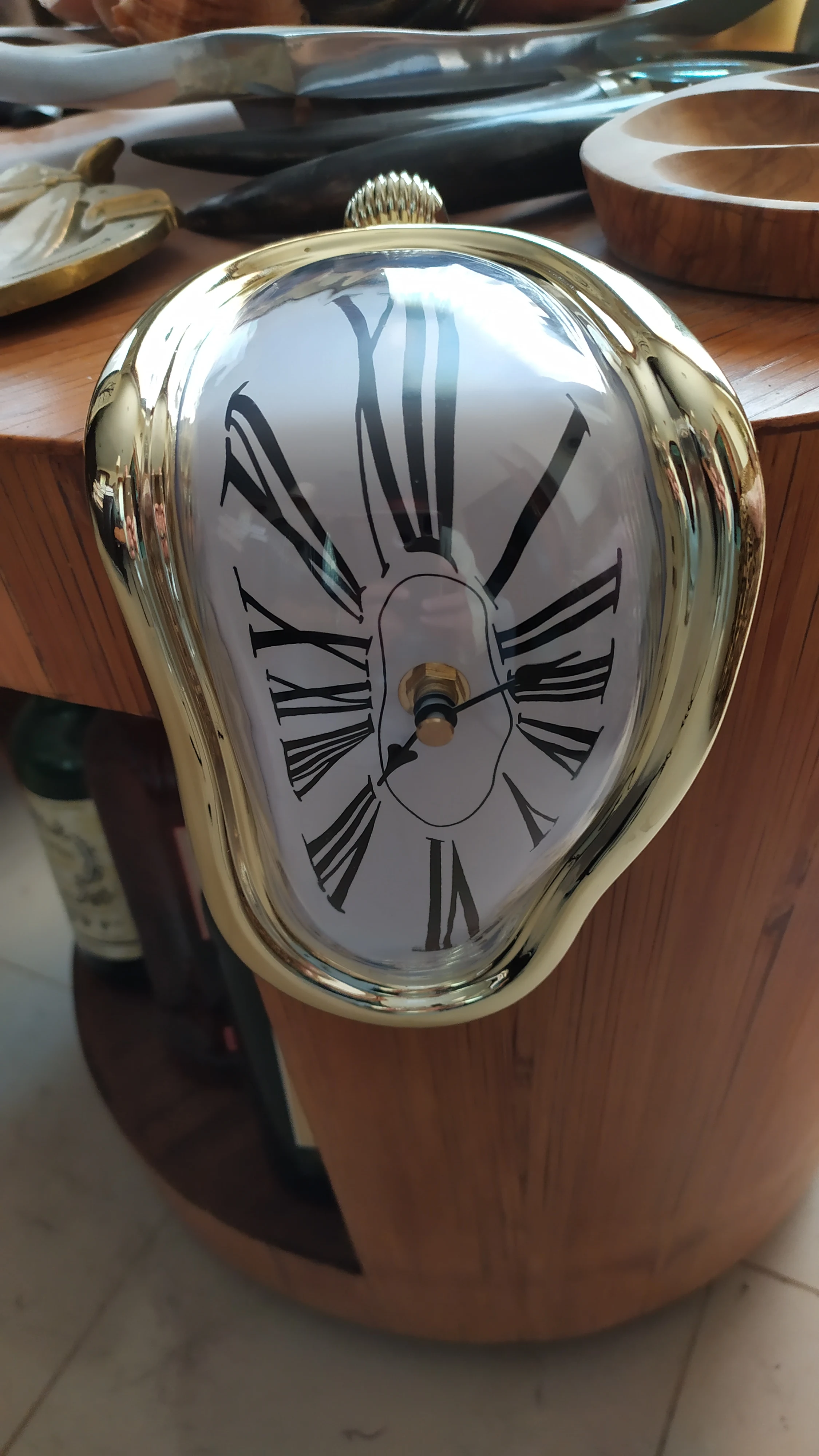 Description: The Dali Surrealist Flowing Distorted Wall Clock is a must-have for Dali enthusiasts and anyone who appreciates unique and artistic decor. This clock, reminiscent of Salvador Dali's famous surrealistic paintings, is a perfect conversation starter and a great addition to any home, bedroom, office, or cabinet. Its trendy yet practical design makes it suitable for all age groups and daily use. The clock features a curved surface that creates an illusion of melting time, adding a touch of humor to your decor. This carefully crafted wall clock is a mix of mid-century modernism and surrealistic aesthetics, making it a thoughtful novelty gift for art enthusiasts. The clock is fully functional with Roman numerals, two manually adjustable hands, and requires 1 AA battery (not included).