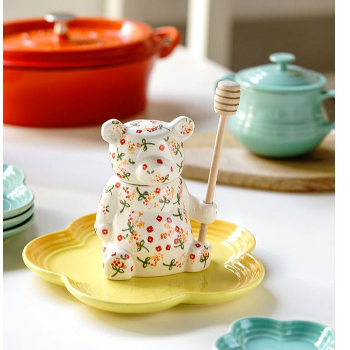Painted Teddy Bear Ceramic Sealed Honey Jar